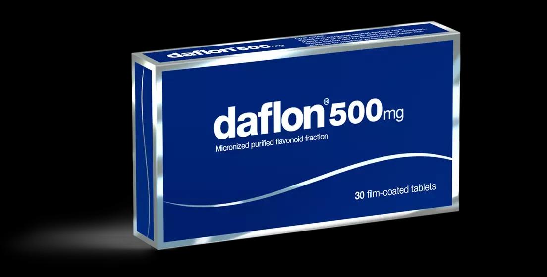 Daflon 500: Micronized, purified flavonoid fraction 500 mg: 450 mg diosmin; 50 mg flavonoids expressed as hesperidine.INDICATIONSTreatment of the symptoms of chronic venous disease of the lower limbs, either organic or functional: feeling of heavy legs, pain, night cramps. Treatment of acute hemorrhoidal episodes.DOSAGE AND ADMINISTRATIONIn venous disease: 1000mg daily.In acute hemorrhoidal attacks: the dosage can be increased up to 3000mg daily. CONTRAINDICATIONSHypersensitivity to the active substance or to any of the excipients. WARNINGS The administration of this product for the symptomatic treatment of acute hemorrhoids does not preclude treatment for other anal conditions. If symptoms do not subside promptly, a proctological examination should be performed and the treatment should be reviewed. Excipients: sodium-free.INTERACTION(S) FERTILITY PREGNANCY / LACTATION* Treatment should be avoided. DRIVE & USE MACHINES* UNDESIRABLE EFFECTS* Common: diarrhoea, dyspepsia, nausea, vomiting. Rare: dizziness, headache, malaise, rash, pruritus, urticaria. Uncommon: colitis. Frequency not known: abdominal pain, isolated face, lip, eyelid oedema. Exceptionally Quincke's oedema. OVERDOSE* PROPERTIES* Vascular protector and venotonic. [Tradename] acts on the return vascular system: it reduces venous distensibility and venous stasis; in the microcirculation, it normalizes capillary permeability and reinforces capillary resistance. PRESENTATION* LES LABORATOIRES SERVIER, 50 rue Carnot, 92284 Suresnes cedex France. www.servier.com * For complete information, please refer to the Summary of Product Characteristics for your country.